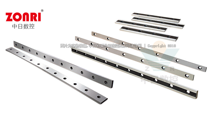 低合金工具鋼的刀片常用的材料為:6Crw2sI、Cr5Mo1V、9CrSi、Cr12MoV等,刀片的熱處理硬度為HRC58—62度范圍內(nèi),專剪不銹鋼,適用于熱軋板、不銹鋼、中、厚板的剪切。